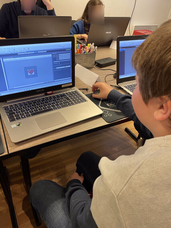Dans un autre stage, les enfants ont eu la chance de concevoir un site web en utilisant des outils professionnels comme Figma pour la maquette et Visual Studio Code pour la programmation en HTML, CSS et JavaScript. Ils ont appris à structurer une page web, à ajouter du texte, des images et à personnaliser l’interface selon les principes d’UX/UI design. Ce stage a permis de comprendre les bases du développement web, tout en créant des pages web personnalisées qu’ils ont pu emporter chez eux sur leur clé USB à la fin de la semaine.