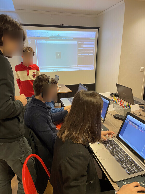 Les ados ont commencé leur aventure numérique en créant un jeu d’arcade épique, Space Shooter, avec Stencyl, une plateforme avancée de développement de jeux vidéo. En utilisant une approche par blocs (plus avancé que Scratch), ils ont appris à gérer des éléments comme les déplacements du vaisseau, les collisions avec des astéroïdes, et la création d’interfaces de jeu. Chaque jeune a conçu son propre jeu avec des sprites, des animations, et a ajusté des éléments comme le score, les vies, et le timer. Ce stage a été l’occasion d’apprendre les bases de la programmation de manière ludique, tout en développant des compétences en game design et UI/UX design. Chacun a eu du temps pour personnaliser son jeu !