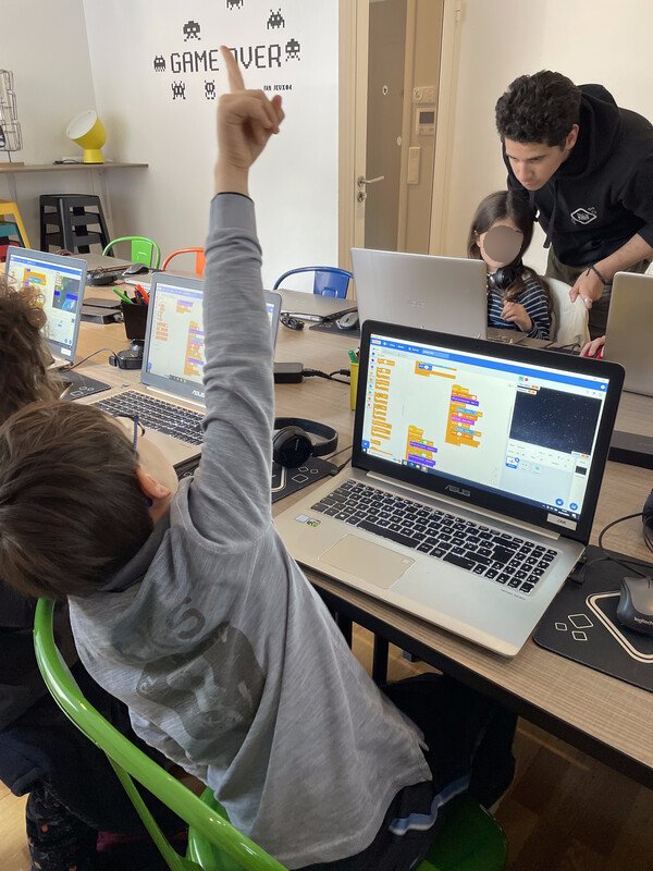 Les enfants s’initient à la programmation de jeux vidéo avec Scratch. Ils apprennent la logique algorithmique en assemblant des blocs (boucle, condition, variable, évènement n’ont plus de secret pour eux).